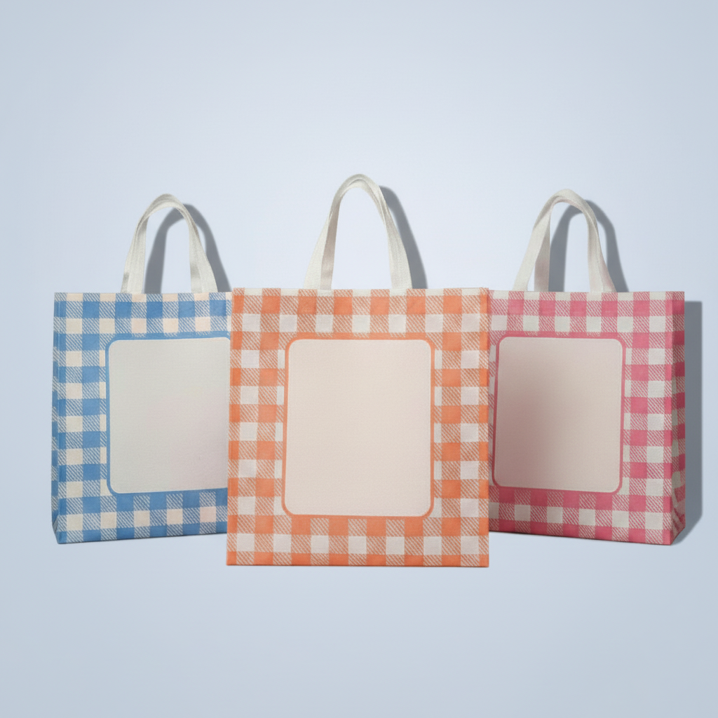 Stylish, eco-friendly bags made from durable non-woven fabric featuring vibrant printed patterns and a structured, freestanding shape. Perfect for boutique retail, custom gift packaging, and standout promotional events.