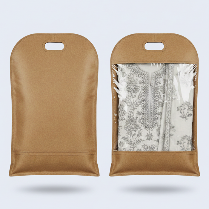 Protective, breathable bags made from lightweight non-woven fabric featuring convenient handles for easy folding and carrying. Perfect for retail apparel packaging, closet organization, and protecting garments during travel.